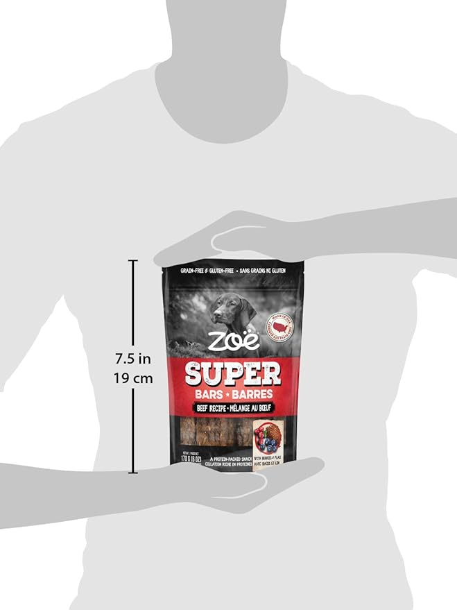 Zoe Super Bar Natural Dog Treats, Protein-Packed, Grain-Free and Gluten-Free, Made in The USA Only, Beef Recipe, 6 oz, 92017