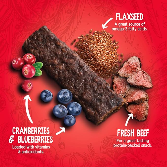 • Cranberry and beef dog treats made with flaxseed for omega-3 fatty acids