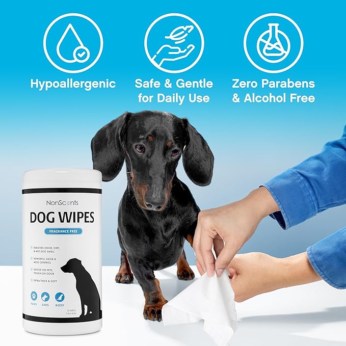 • GROOMING WIPES FOR DOGS: Gentle enough for daily use, NonScents wipes for dogs are hypoallergenic and free from parabens, alcohol, and harsh chemicals. Safeguard your furry friend's sensitive skin while maintaining their cleanliness and well-being.