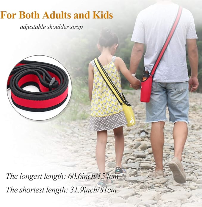 • COMFORTABLE: lightweight and soft neoprene water bottle carrier with adjustable wide strap allows you to wear comfortably over shoulder or cross body for long time; Exquisite sewing ensures durability