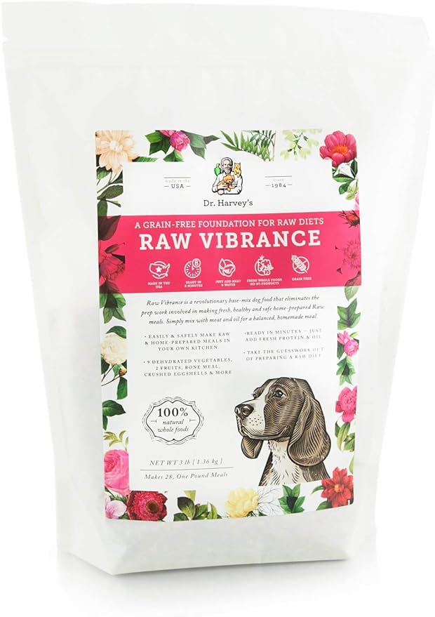 Dr. Harvey's Raw Vibrance Dog Food, Human Grade Dehydrated Base Mix for Dogs, Grain Free Raw Diet (3 Pounds)