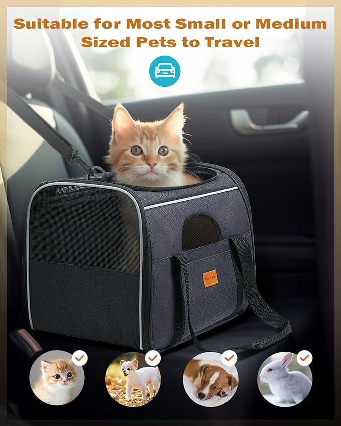 • 【 Versatile Travel Companion 】Suitable for all types of cats and small animals, the Cat Carrier is the perfect travel companion for cars, trains, airplanes, and more. Please check specific airline regulations before boarding. Our carrier is designed to provide comfort and ease for both you and your pet, making it the perfect choice for pet owners who value safety and convenience.