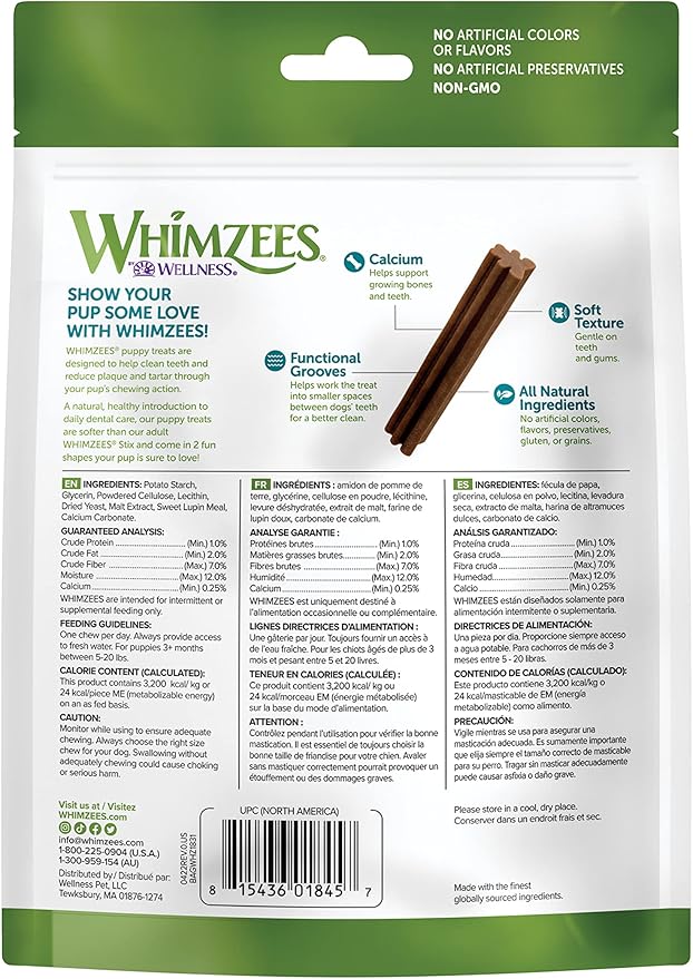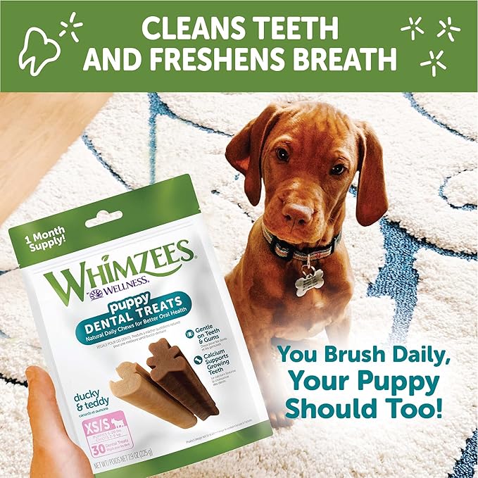WHIMZEES by Wellness Puppy Natural Dental Chews for Dogs, Long Lasting Treats, Grain-Free, Freshens Breath, Extra Small/Small Breed, 30 count , 7.90 Ounce (Pack of 1)