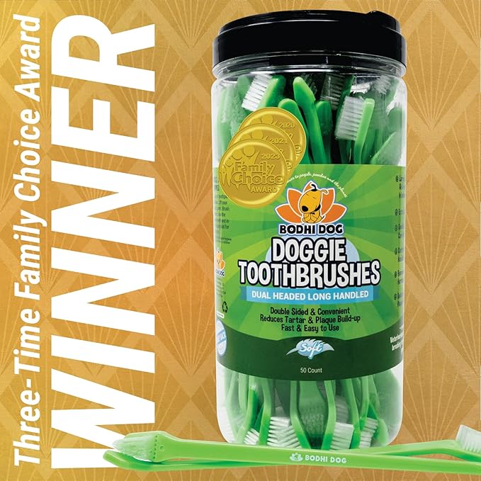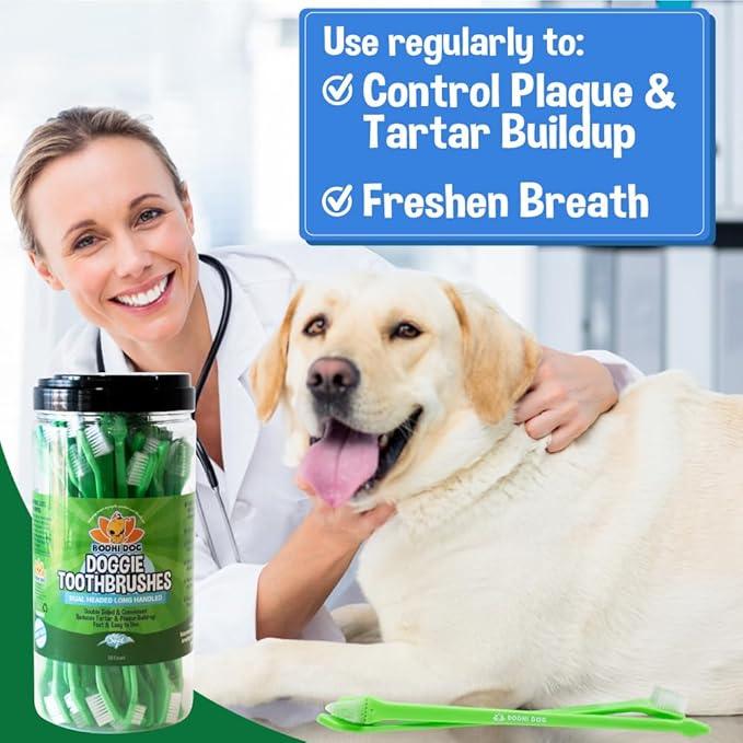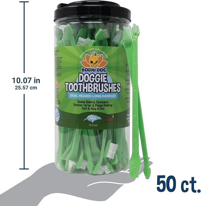 Bodhi Dog Dual-Headed Long Dog & Cat Toothbrush | Puppy Toothbrush with Soft Bristles for Pet Dental Care | Easy Teeth Cleaning Dog Toothbrush, 50 Count