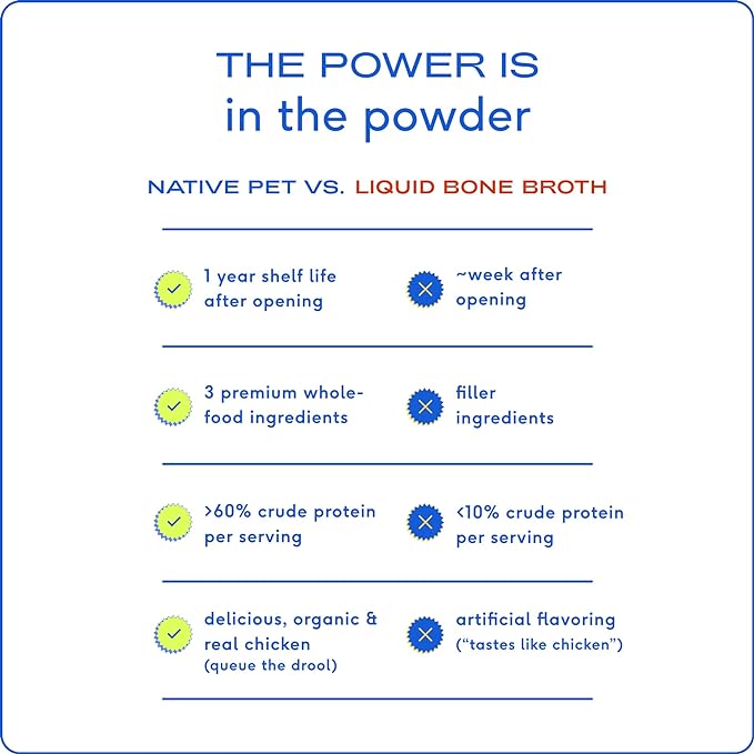 Native Pet Bone Broth for Dogs and Cats – Dog Bone Broth Powder for Dog Food Topper for Picky Eaters – Cat and Dog Broth - Dog Gravy Topper for Dry Food – Chicken Broth for Dogs and Cats – 5.75 oz
