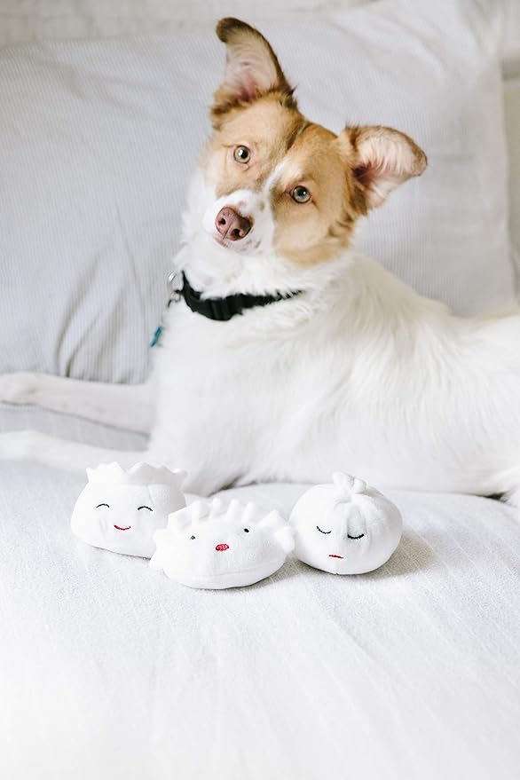 Pearhead Dim Sum Pet Toys, Squeaky Dog Toy Set, Pet Owner Must Have Dog Accessory, Set of 3, All Breed Sizes, White