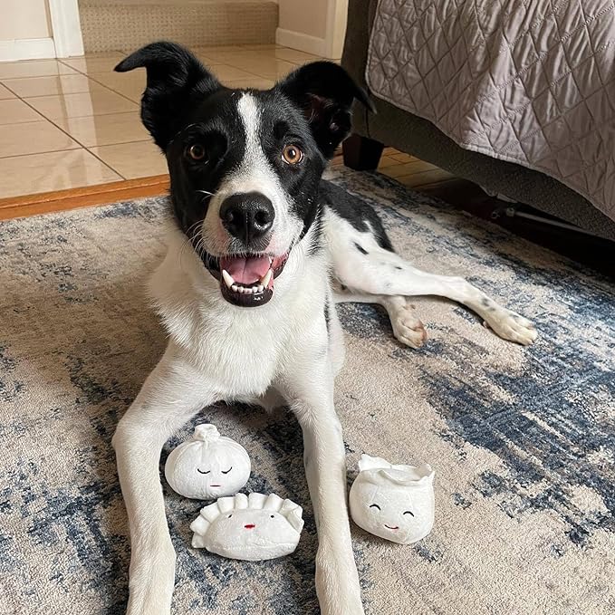 • Pearhead’s dim sum dumpling dog toy set is the perfect toy set to enjoy playtime with your new puppy or oldest and furriest friend