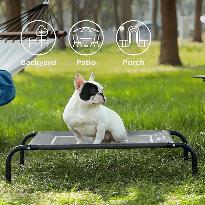 Bedsure Medium Elevated Cooling Outdoor Dog Bed - Raised Cots for Medium Dogs, Portable Indoor & Outdoor Pet Hammock Bed with Skid-Resistant Feet, Frame with Breathable Mesh, Grey, 43 inches