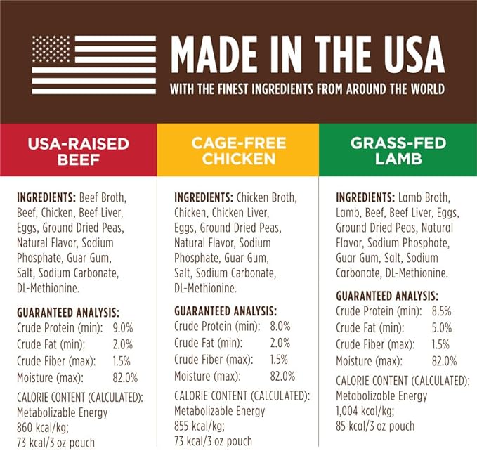 • RAW INSPIRED GRAIN FREE DOG FOOD POUCHES: Our grain free wet dog food offers supplemental nutrition from real ingredients to support your dog's health from puppy to senior. Made in the USA with the finest ingredients from around the world.