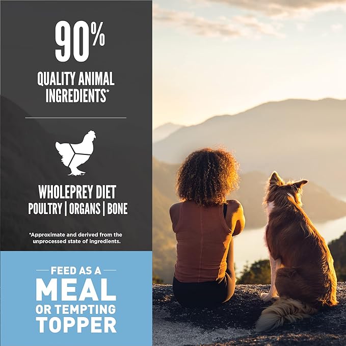 • Freeze-dried Dog Food made with the most succulent and nutrient-rich parts of the prey, containing up to 90 percent** quality raw animal ingredients and ORIJEN WholePrey ingredients like organs and bones