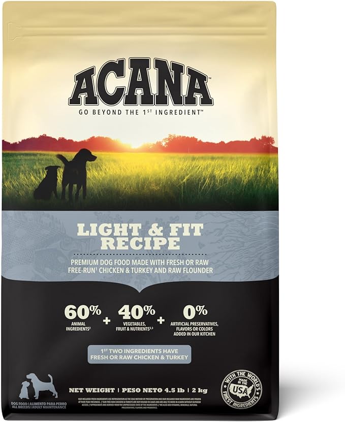 • One (1) 4.5 lb bag of ACANA Light & Fit Recipe Adult Dry Dog Food