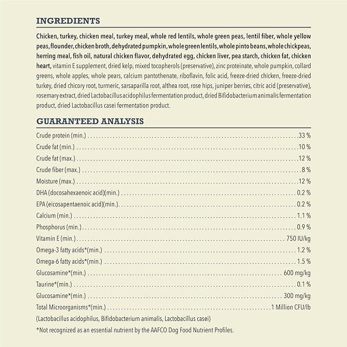 • High protein dry dog food kibble features 60 percent* high-quality animal ingredients and 40 percent** wholesome fruits and vegetables