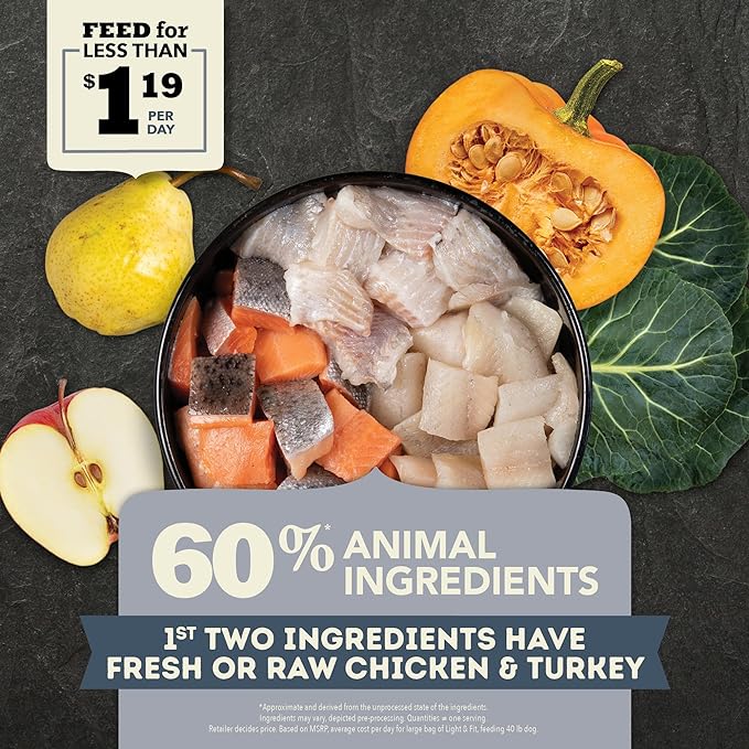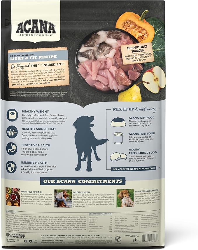 • One (1) 13 lb bag of ACANA Light & Fit Recipe Adult Dry Dog Food