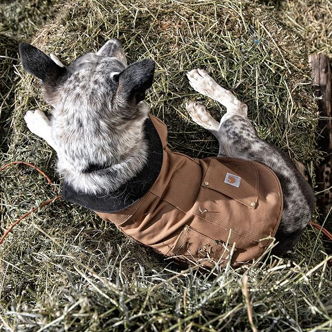 • Carhartt Firm Duck Insulated Dog Chore Coat. Durable dog coat with iconic roots for the hardest working dogs