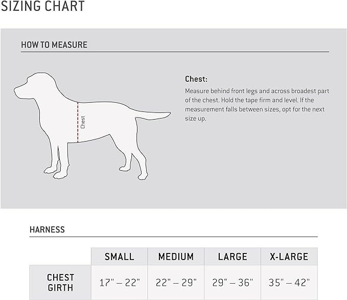 • Sizing: Small (Chest Girth: 16"- 22") Medium (Chest Girth 22"- 29") Large (Chest Girth 29"- 36") Extra Large (Chest Girth 35"- 42") See sizing chart in images