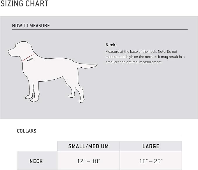 • Sizing: Medium (Neck: 12"- 18") Large (Neck: 18"- 26") Measure at the base of the neck. Note: Do not measure too high on the neck as it may result in a smaller than optimal measurement