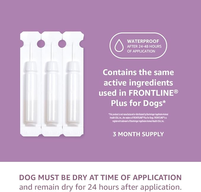 Amazon Basics Flea and Tick Topical Treatment for Large Dogs (45-88 pounds), Unscented, 3 Count (Previously Solimo)