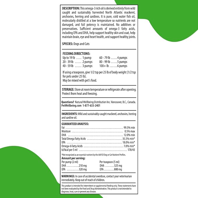 • ✅ HIGH-POTENCY OMEGA-3 EPA & DHA. Daily wellness support for your pet! Essential fatty acids (EFAs) are necessary for the health of all of your pet's body systems. Sourced from sustainably caught, cold-water fish: Icelandic anchovies, herring, sardines, and mackerel. Molecularly distilled at a low temperature to preserve potency and tested for purity. Natural triglyceride (TG) form.