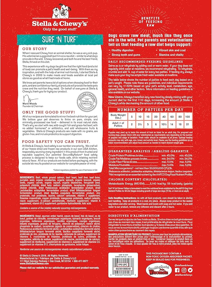 Stella & Chewy's Freeze Dried Raw Dinner Patties – Grain Free Dog Food, Protein Rich Surf ‘N Turf Salmon & Beef Recipe – 25 oz Bag