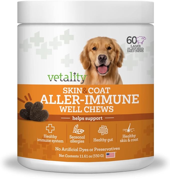 Well Chews | Soft Chew Supplements for Dogs | 60 Count | Made in USA (Skin + Coat)