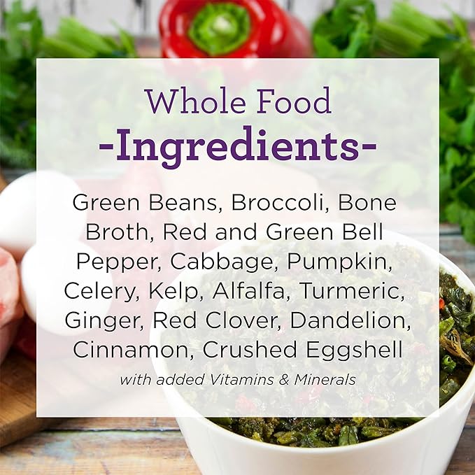 • Green food pre-mix makes an ideal base for a nutritionally complete low-carb diet; 100% grain-free, our holistic blend of six (6) nutritious dehydrated vegetables contain absolutely no dies, fillers, wheat, corn, soy, nor preservatives