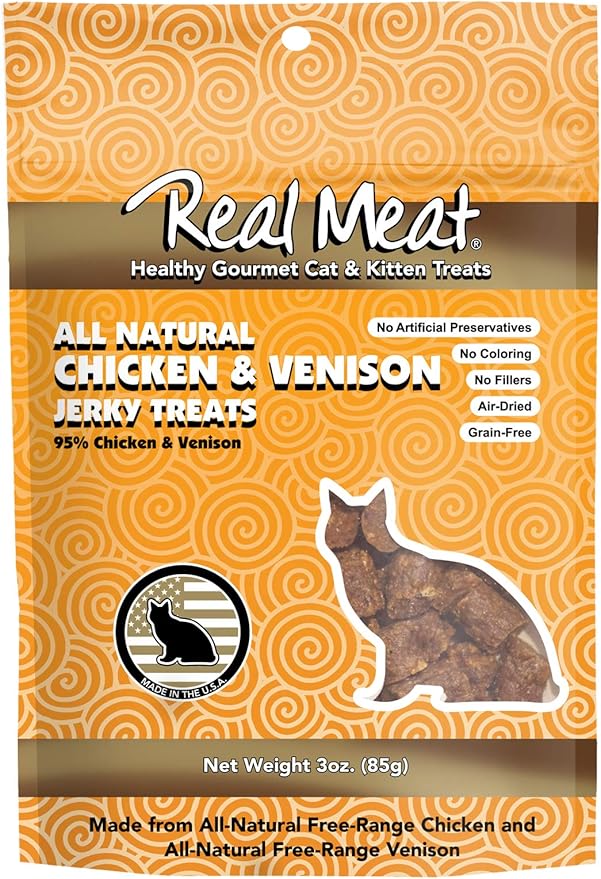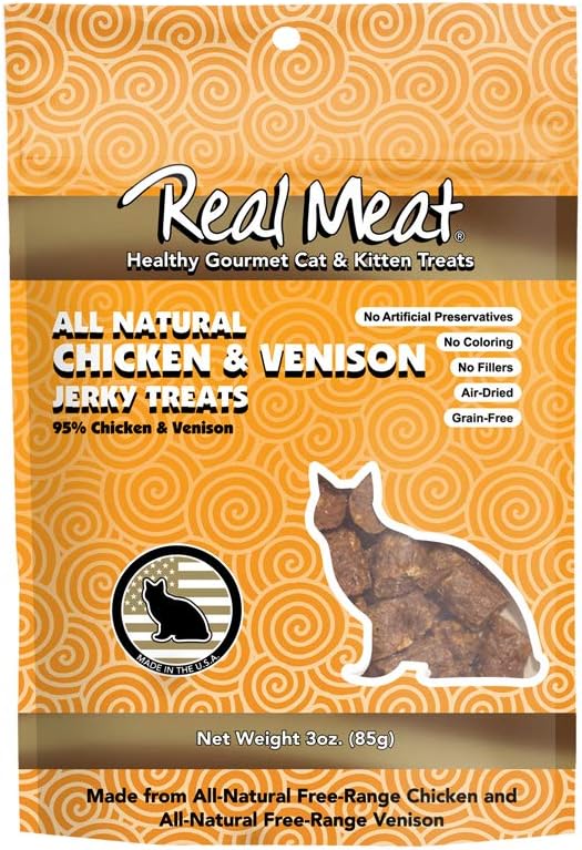 Real Meat, Air-Dried Jerky Treats, Free-Range, All-Natural Chicken Venison Cat Treat 3oz