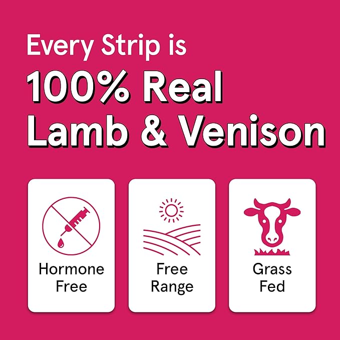 • MADE WITH 95% HUMAN GRADE MEAT - 95% of these 7-inch strips of air dried natural dog jerky treats contain real human grade lamb & venison! This premium high-protein jerky for dogs will have your pup's tail wagging nonstop! Not to mention, their soft, chewy, and moist texture, they are perfect for dogs of any age or size