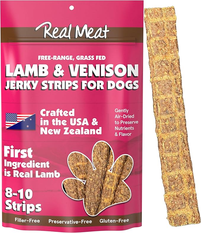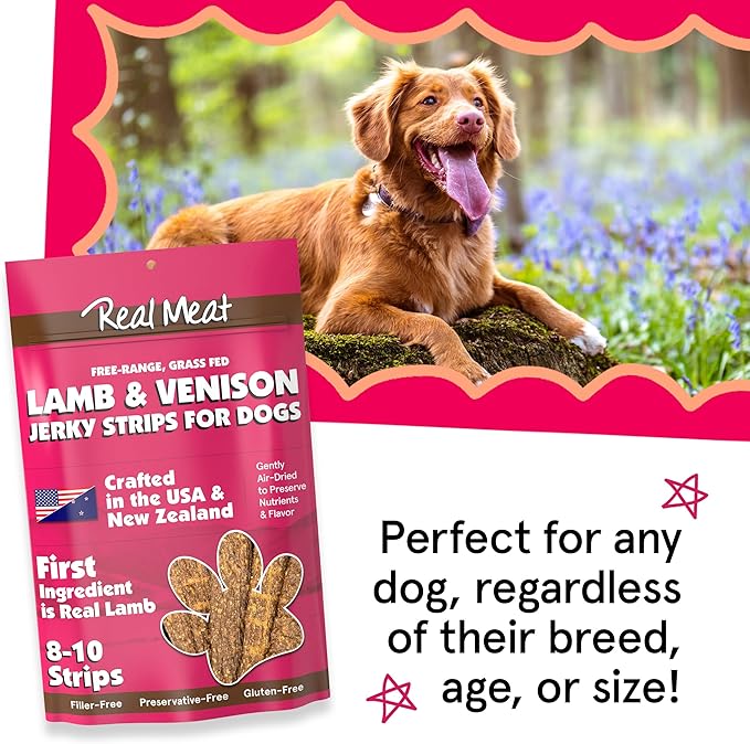 Real Meat Lamb & Venison Jerky Dog Treats - 8 Air-Dried Strips of Jerky Treats for Dogs - Grain-Free Jerky Treats Dog Snacks with 95% Human-Grade Free-Range Lamb & Venison - All-Natural Dog Jerky