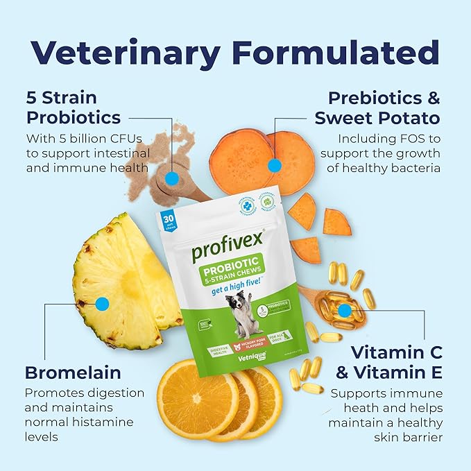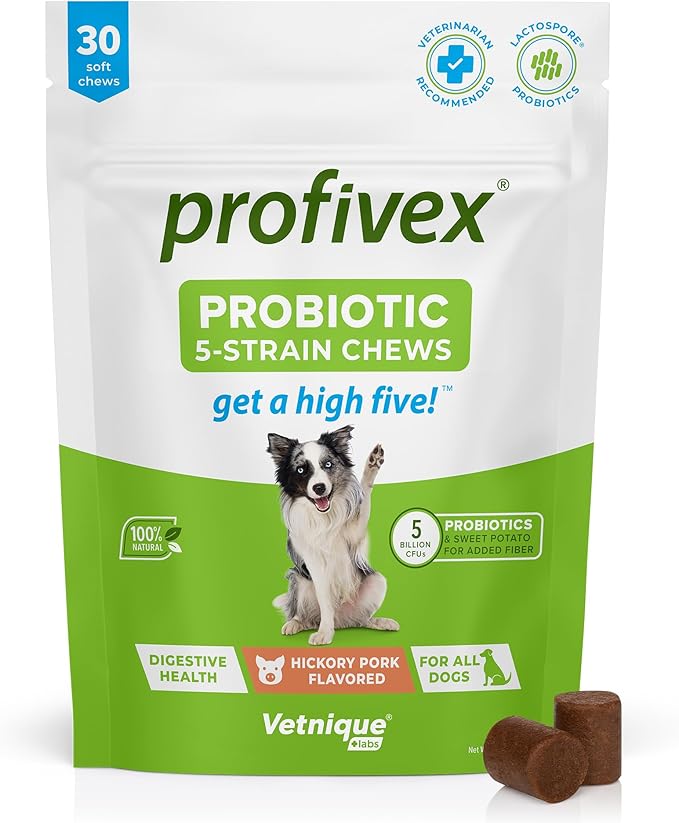 Vetnique Labs Profivex Probiotics for Dogs All Natural Dog Chews & Powder for Digestive Health Probiotic Supplements for Dogs 5 Strains of Probiotics & Prebiotics (Soft Chews, 30ct)