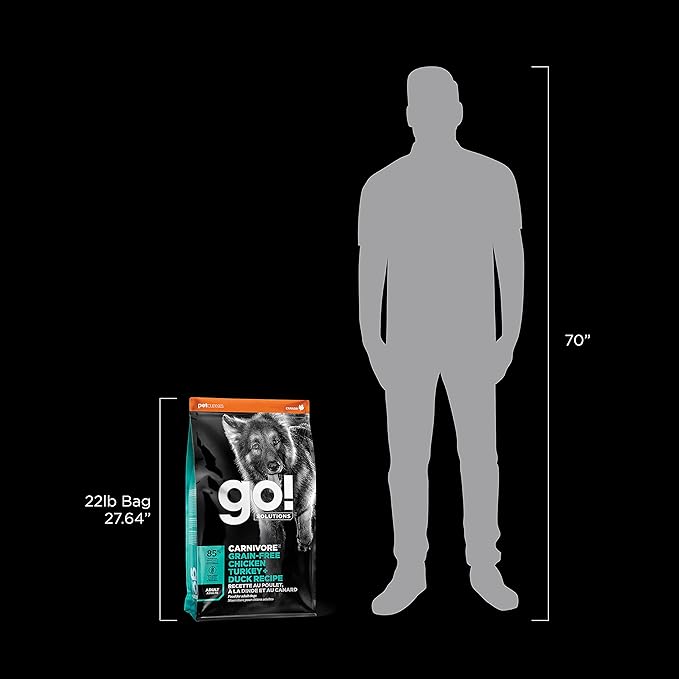 GO! SOLUTIONS Carnivore Grain Free Dog Food for Adult Dogs, 22 lb – Chicken, Turkey + Duck Recipe – Protein Rich Dry Dog Food – Complete + Balanced Nutrition for Adult Dogs