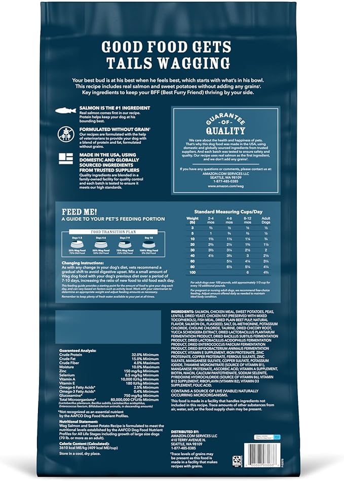 Amazon Brand - Wag Dry Dog Food Salmon & Sweet Potato, Grain Free 24 lb Bag