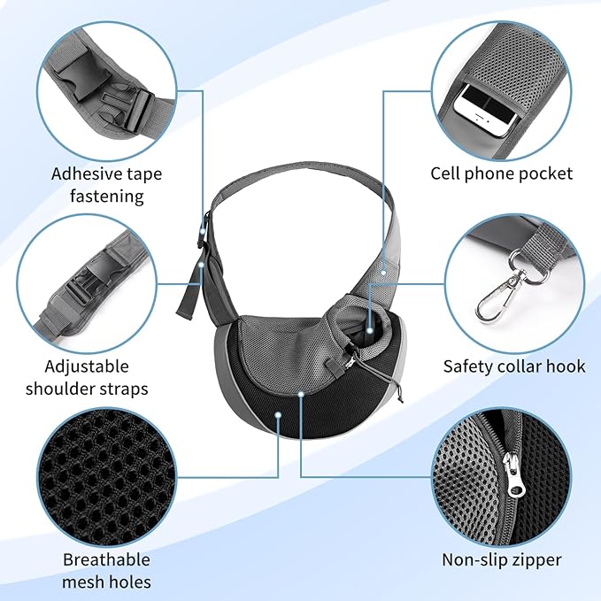 YUDODO Pet Dog Sling Carrier Large Pocket Adjust Strap Anti-falling Design Breathable Mesh Travel Safe Sling Bag Carrier for Dogs Cats