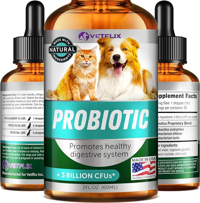 Premium Probiotics for Dogs & Cats - Digestive Enzymes & Prebiotics Supplement - Helps to Relieve Diarrhea, Vomiting, Upset Stomach, Gas, Constipation & Bad Breath - Supports Healthy Digestive System