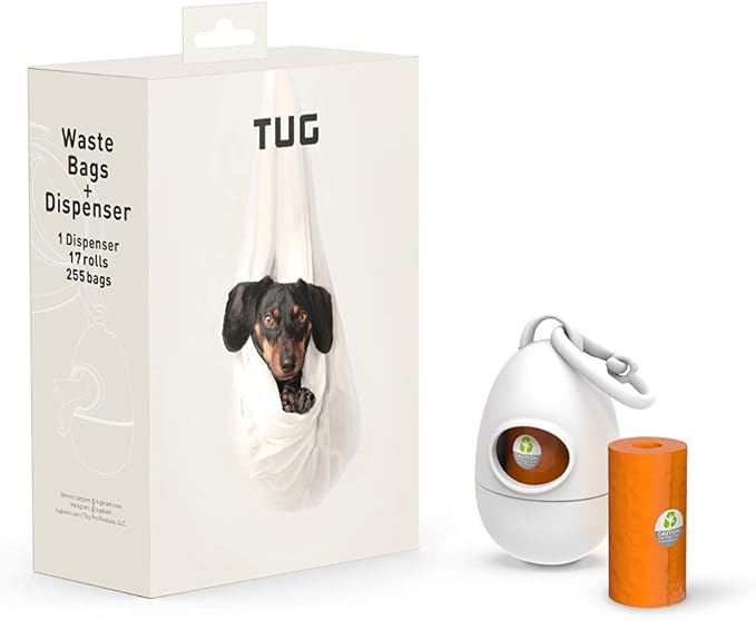 TUG Dog Waste Bag Dispenser with Dog Poop Bags, 17 Rolls (255 Bags), 15 Bags Per Roll, With White Dispenser