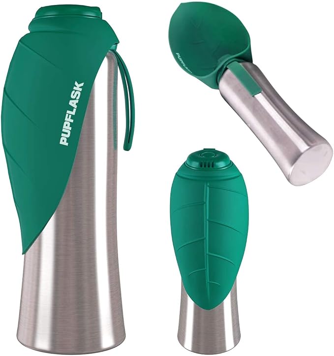 • HAPPY, HYDRATED PETS make the best traveling companions, and the PupFlask goes wherever you and your furry friend venture. Reversible leaf-shaped bowl lays flat over bottle when not in use.