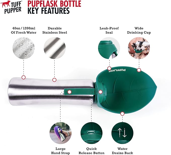 PupFlask Large Dog Water Bottle | 27 or 40 OZ Stainless Steel | Convenient Dog Water Dispenser | Puppy Travel Water Bowl | Portable Pet Water Bottle | Leak Proof Bottle Perfect Size For All Dog Breeds