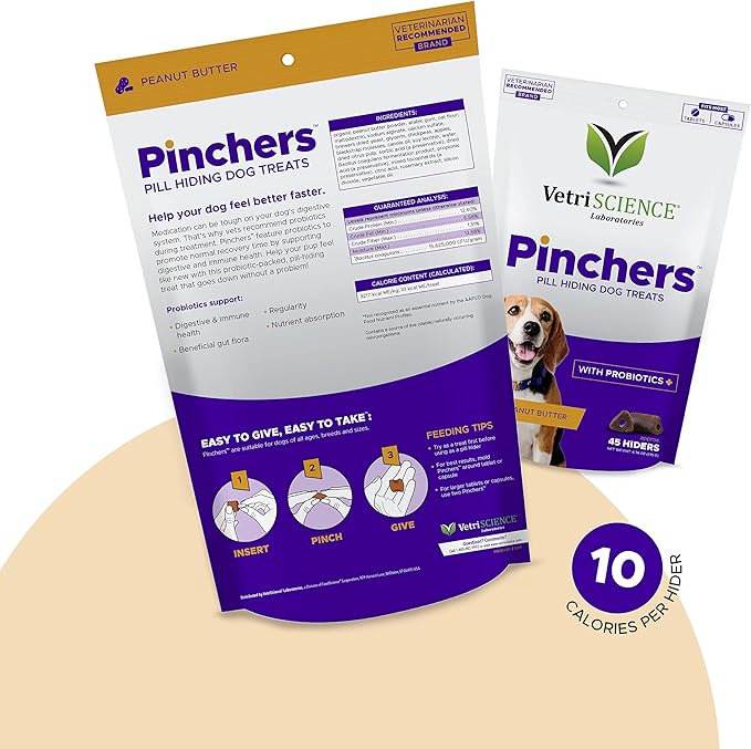 VETRISCIENCE Pinchers, Pill Hiding Dog Treats, Peanut Butter Flavor, 45 Hiders (2 Pack)