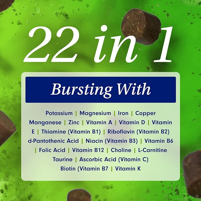 • 1 Daily Chew, 13 Unique Benefits - Our nutritional multifunctional multivitamins for dogs delivers a spectrum of health benefits - these range from skin and coat health to immune system support. They are the fuel your dog needs for a happy, healthy life