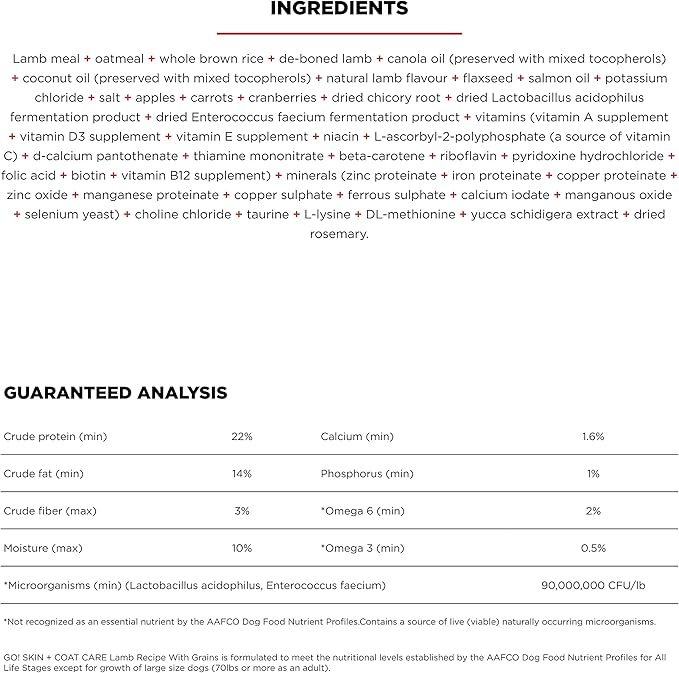 GO! SOLUTIONS Skin + Coat Care - Dry Dog Food, 12 lb - Lamb Recipe with Grains for All Life Stages - Complete + Balanced Nutrition for Dogs