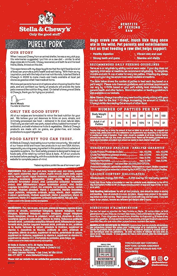 Stella & Chewy's Freeze Dried Raw Dinner Patties – Grain Free Dog Food, Protein Rich Purely Pork Recipe – 14 oz Bag (Packaging may vary)