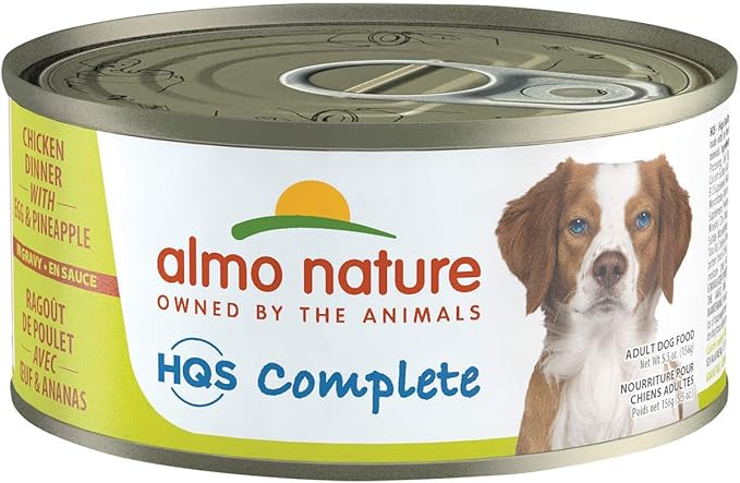 Almo Nature HQS Complete Chicken Dinner with Pineapple & Egg In Gravy, Grain Free, Adult Dog Canned Wet Food, Shredded.