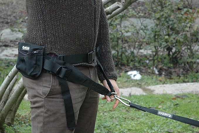Neewa Racing Tug Line with Bungee for 2 dogs (2m (6.5ft) - 2 Dogs, Red) - Ideal Lead for Hands Free Walking, Running, Canicross, Bikejoring - This Leash has Handle in The Middle to Allow Dog Control