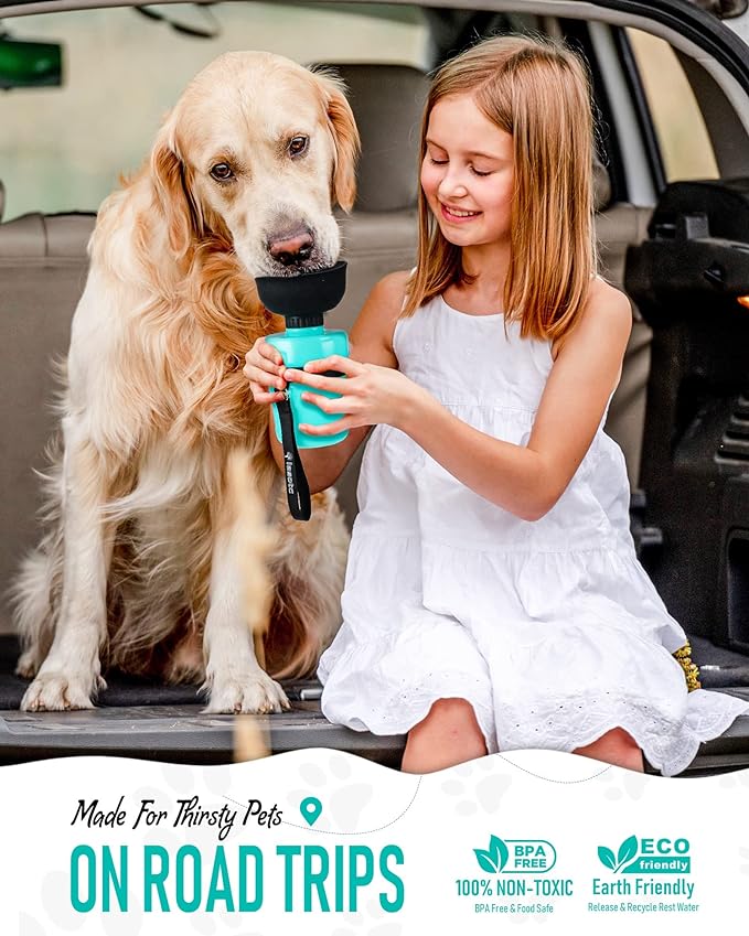 • This 18oz dog hiking water bottle comes with a buckle, and a wrist strap, make dog squeeze water bottle easy to carry. Great dog hiking accessories for your fur friend when outdoor traveling.