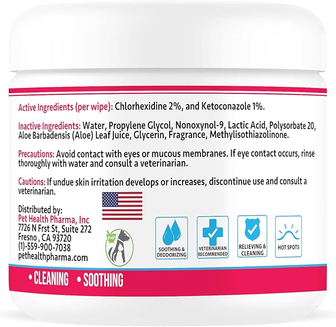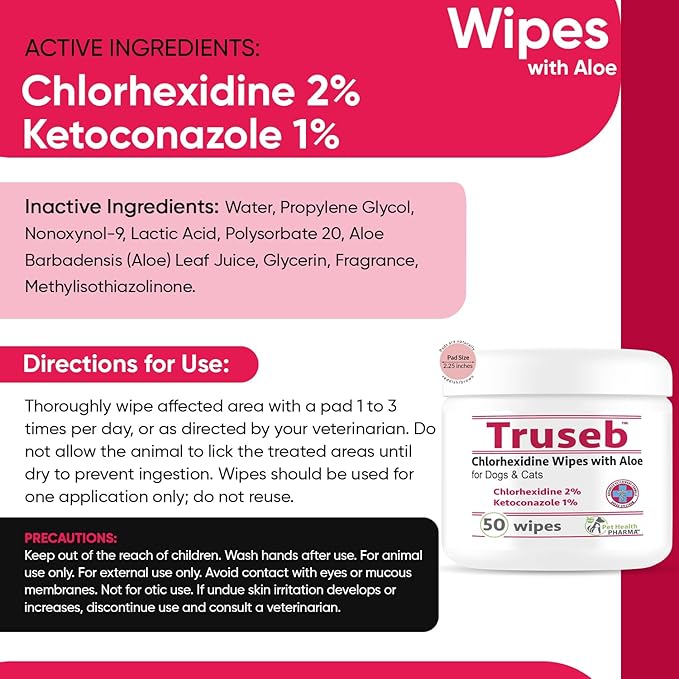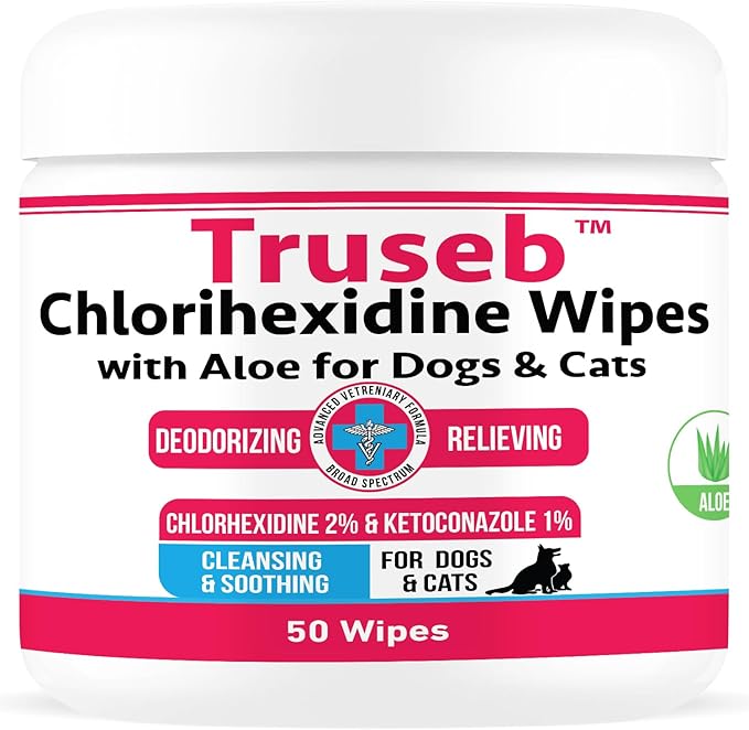 Truseb Topical for Dogs, Cats and Horses - with Aloe for Cleansing (Ketoconazole & Chlorhexidine Wipes, 100 count)