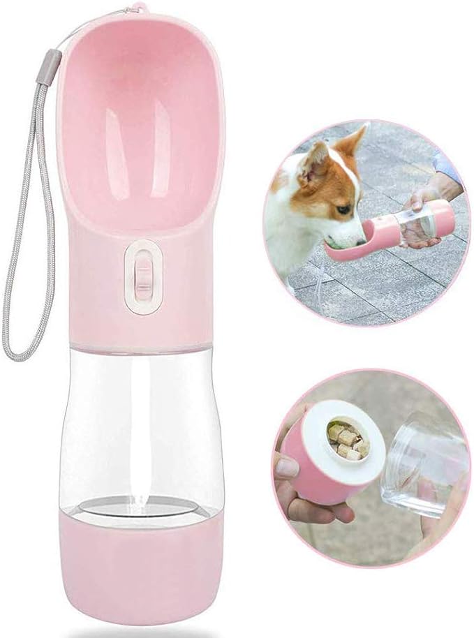 • 2 LAYER-WATER&FOOD DESIGN£ºThe mutifunctional water bottle for dogs comes with two parts with food container, can hold 8.7oz water and 6.8oz food.Perfect for your pet's need for water and food with bowl.