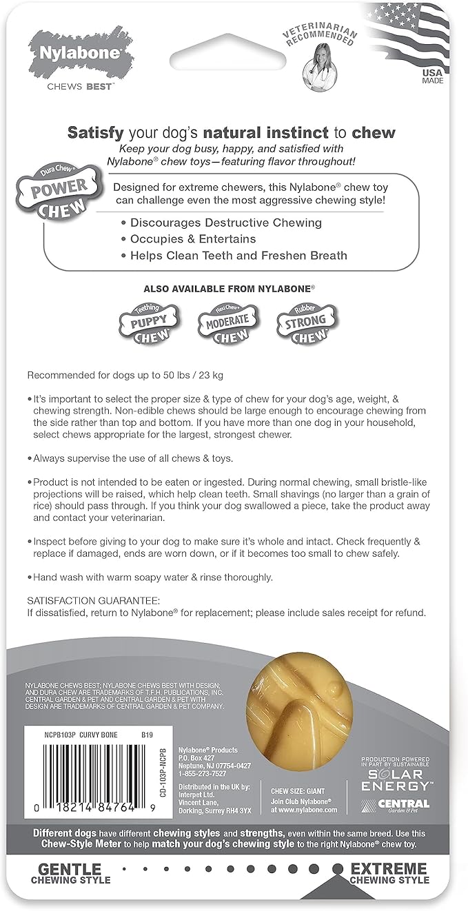 Nylabone Power Chew Curvy Dental Chew Toy for Dogs Large - Up to 50 lbs.