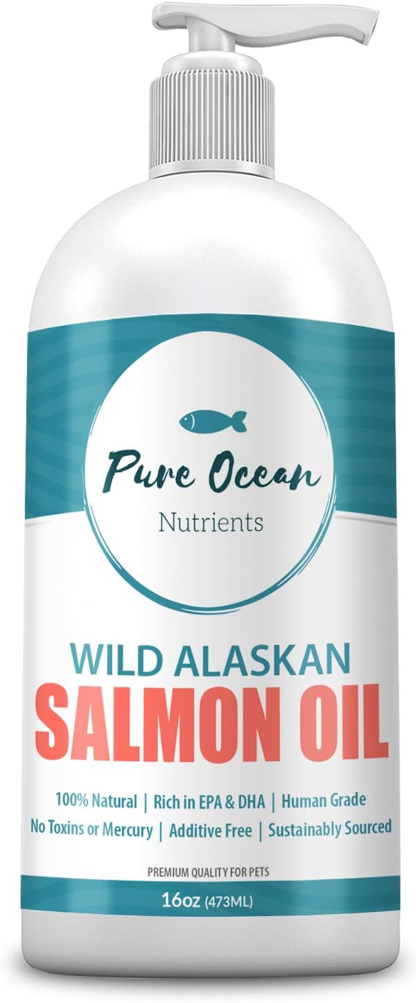 Wild Alaskan Salmon Fish Oil for Dogs & Cats 16 Ounce; Natural Liquid Supplement with Omega 3's to Support Joint, Heart, and Immune Health; Essential Fatty Acids Promote a Shiny Coat and Healthy Skin