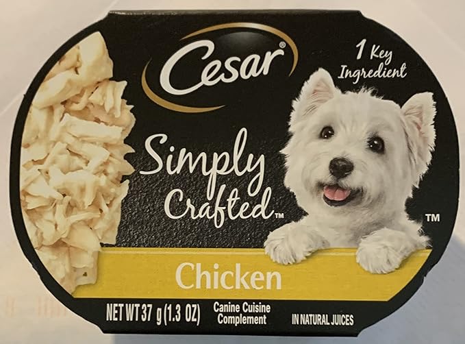 Cesar Wet Dog Food Simply Crafted Adult Wet Dog Food Cuisine Complement, Chicken, 1.3 Oz. Tub