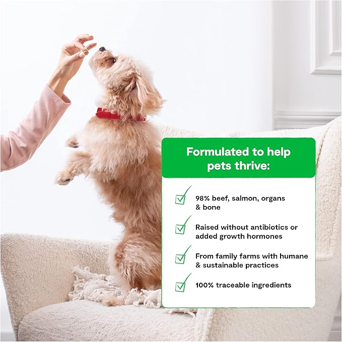 • SURF & TURF: This nutritious recipe is an irresistible complete meal or tasty topper, thanks to a high-protein mix of 100% pasture-raised raw beef and and Ocean Wise approved wild-caught salmon, along with organic veggies and superfoods to support your dog’s overall health.