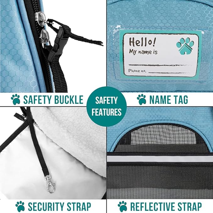 • AIRLINE APPROVED CAT CARRIER: Airline compliant and fits under most airplane seats, this tsa approved pet carrier is easy to carry on in different ways. Besides top handle strap and a removable shoulder strap, the pet travel bag is equipped with side buckles for car seat belt loops. Comes with an identification name tag, and a zipper pocket on the front to store pet stuff, treat, food, toy, or personal items, phone and cards, this soft cat taxi is the most convenient carrier for travels.